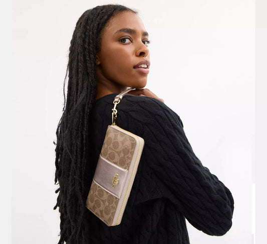 Coach Corner Zip Wristlet in Signature Canvas With Stripe